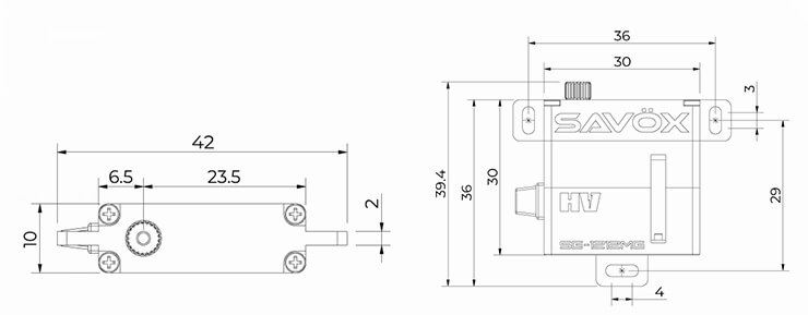 The Savox SG1212MG servo is only 10mm deep and therefore ideal for the usage in thin wings of speed models and gliders. The full aluminium case makes it light and prevents over-heating. Highest precision for your model is guaranteed by backlash double ball bearing gears.